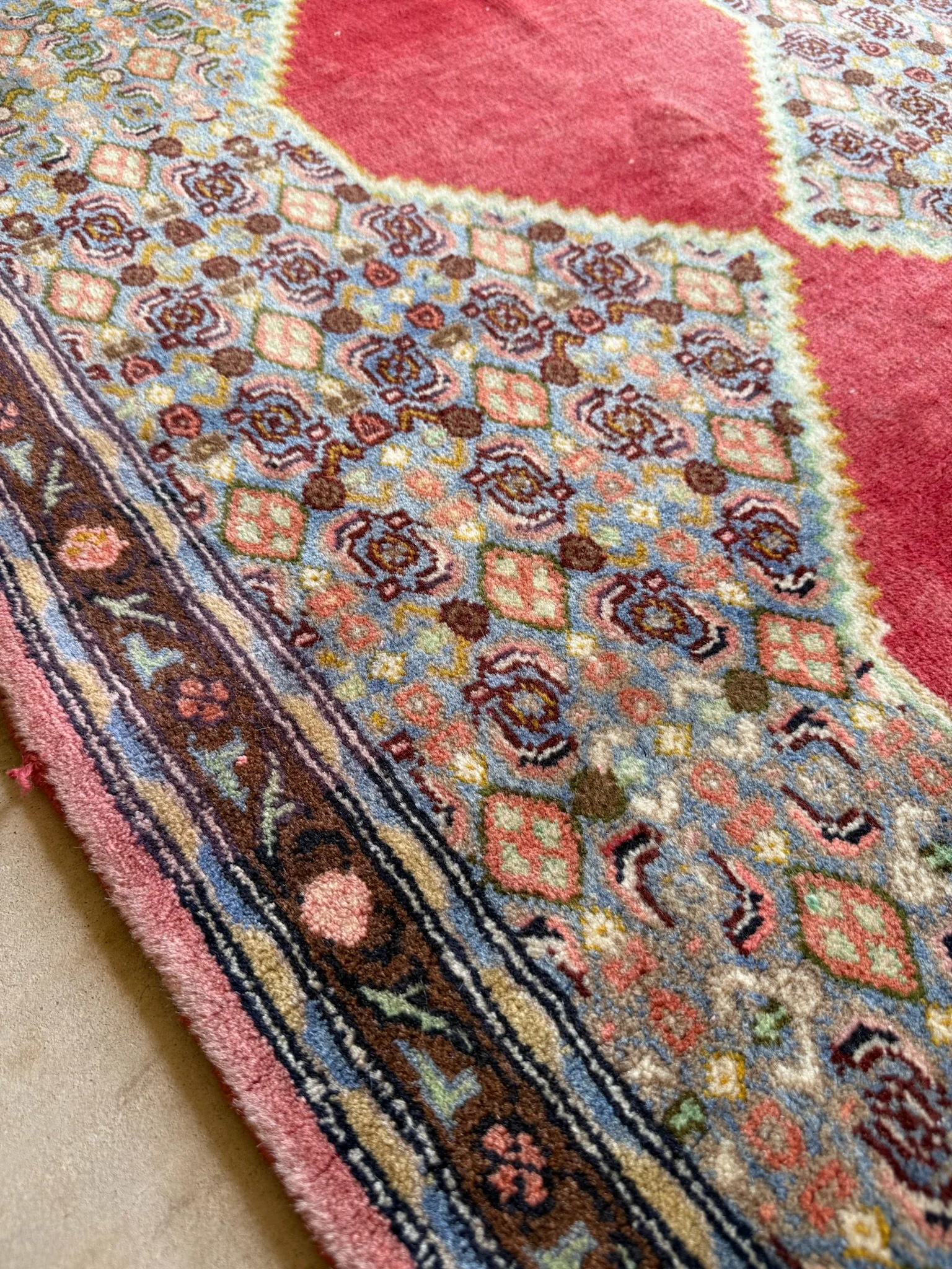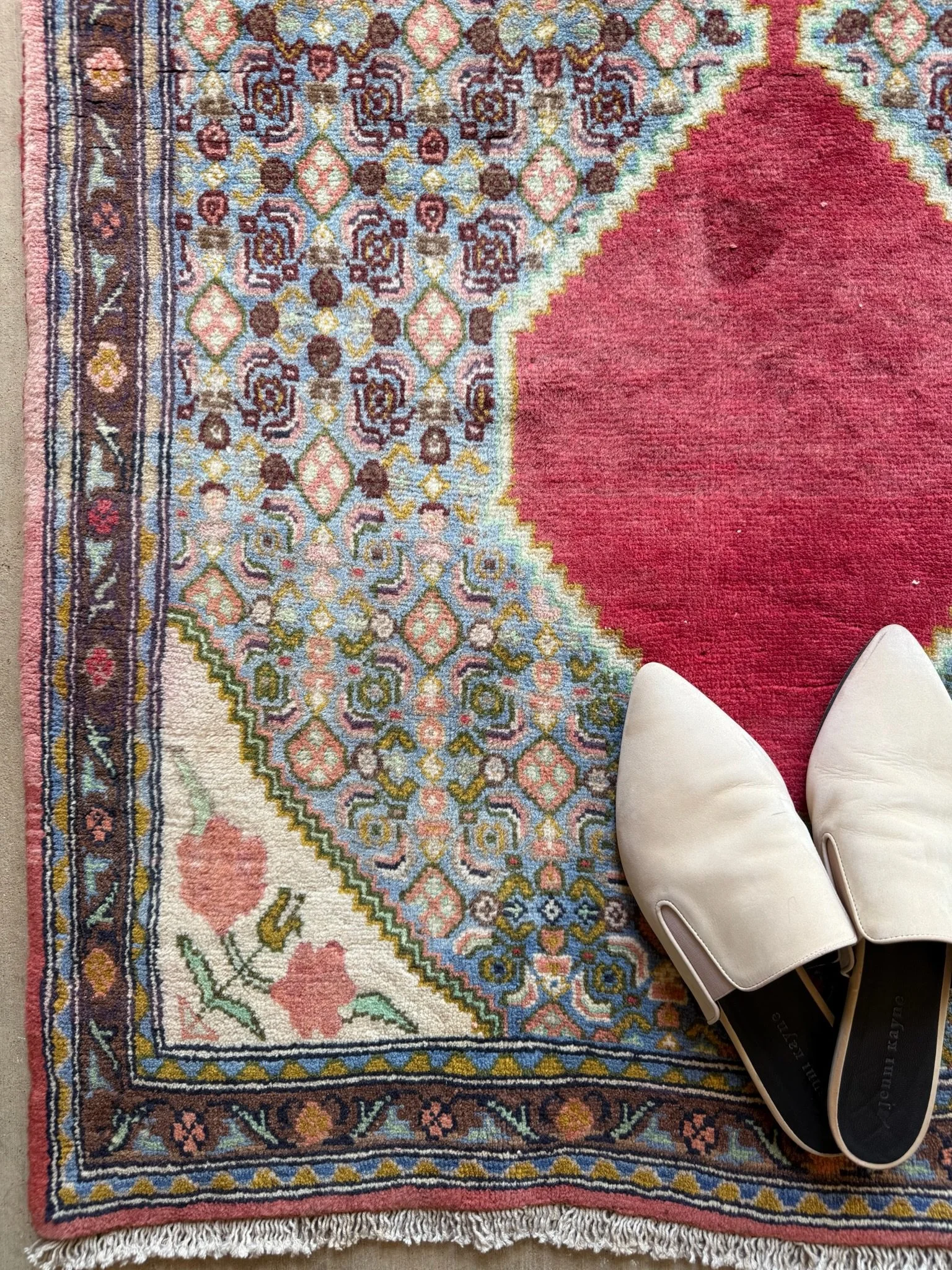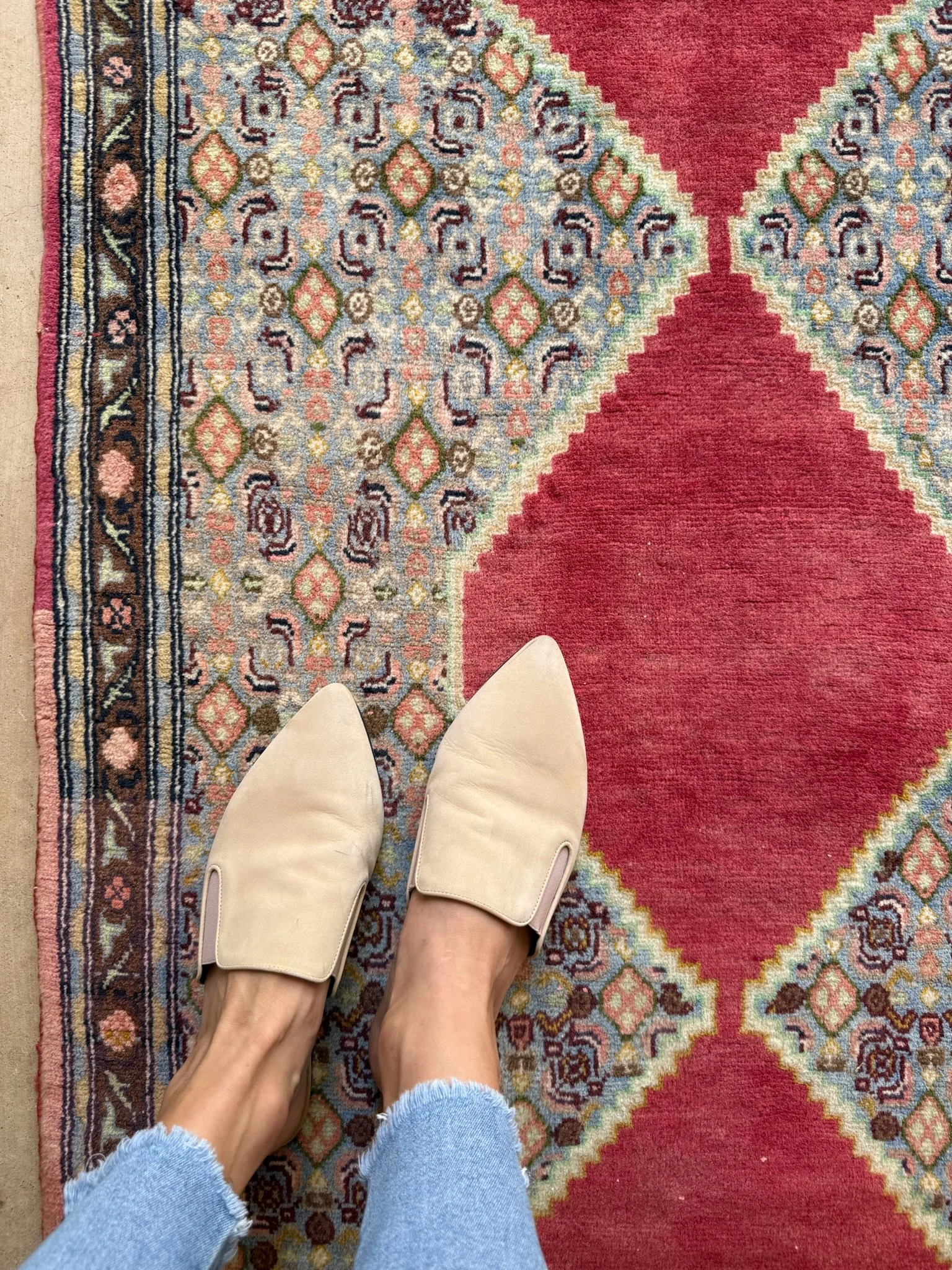 Roseline Passage moves like poetry in wool with its fiery rose field glowing with warmth, flowing through a series of rhythmic medallions that feel both graceful and grounded. Each motif carries a whisper of time, gently fading into harmony with the next, like steps along an ancient trail.
