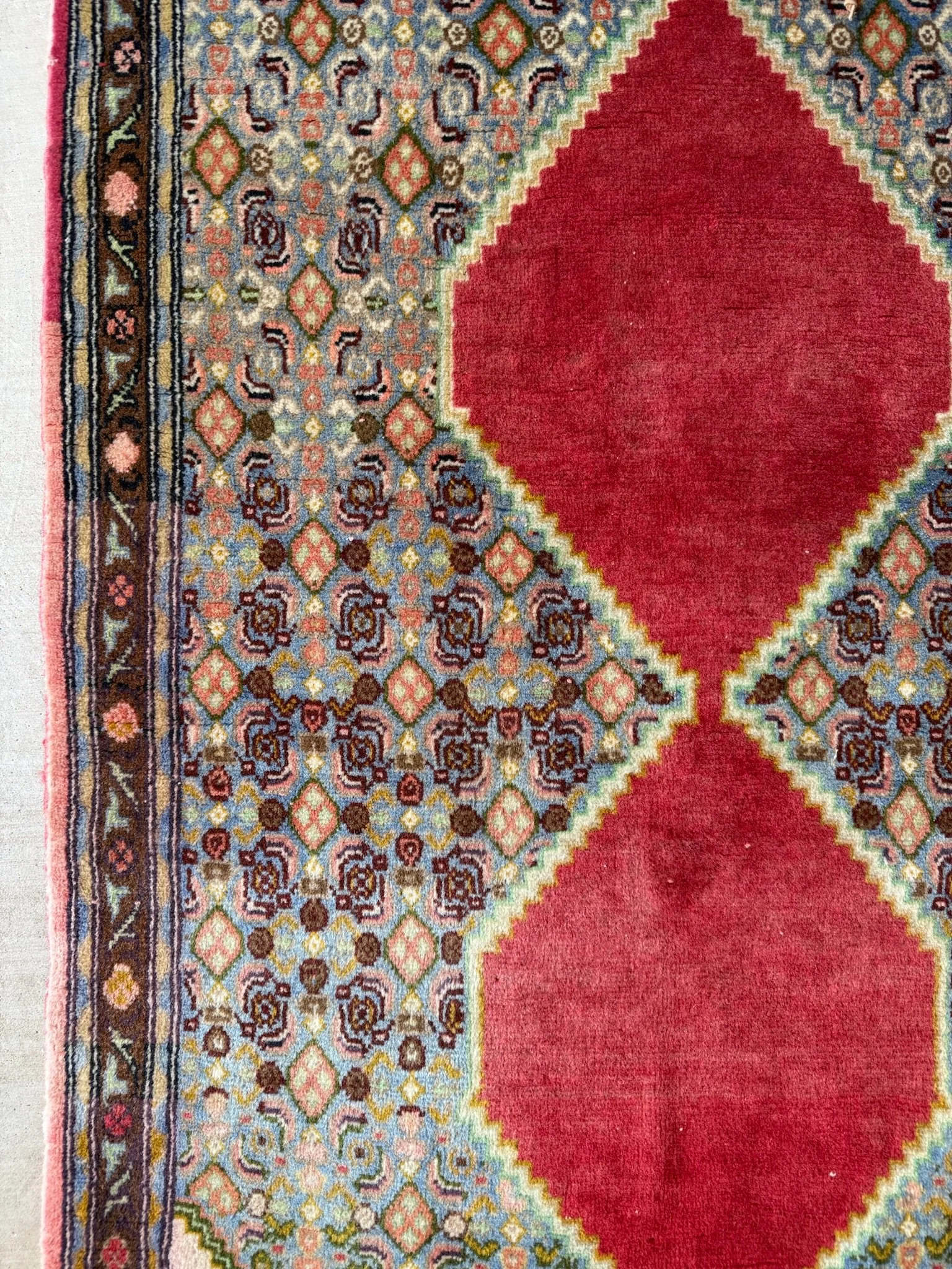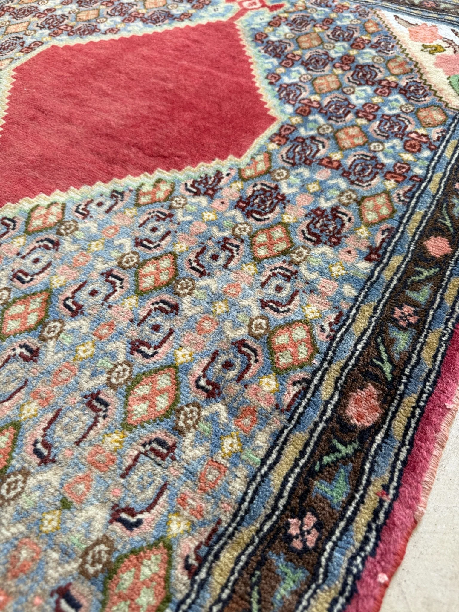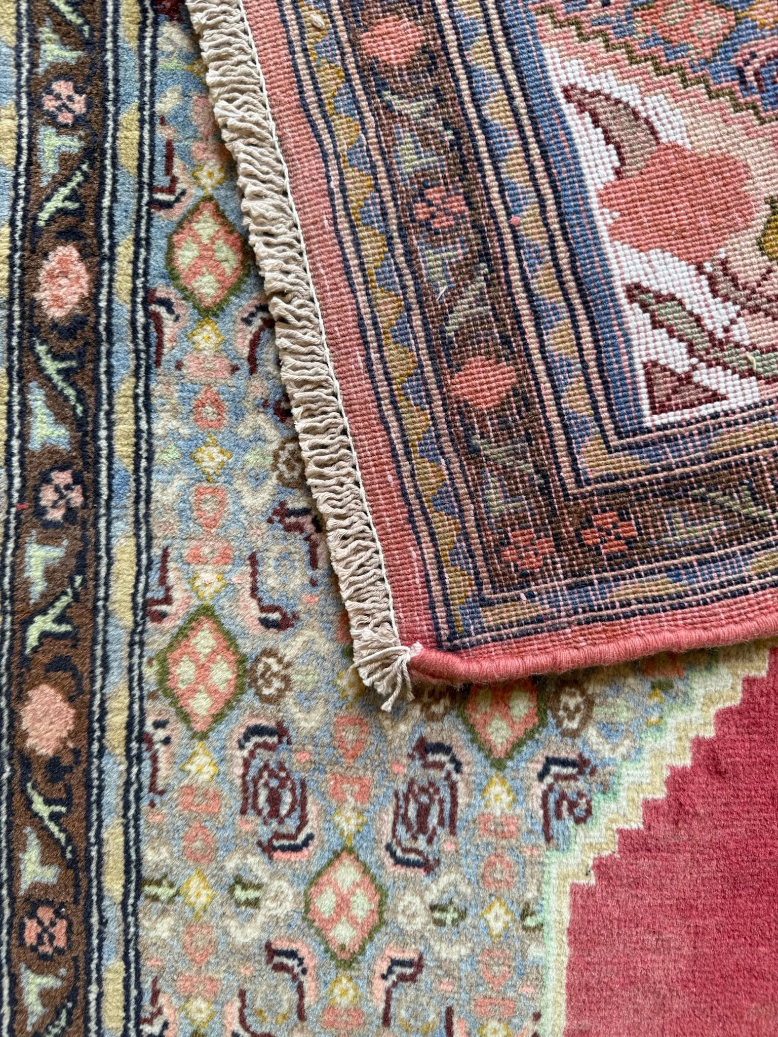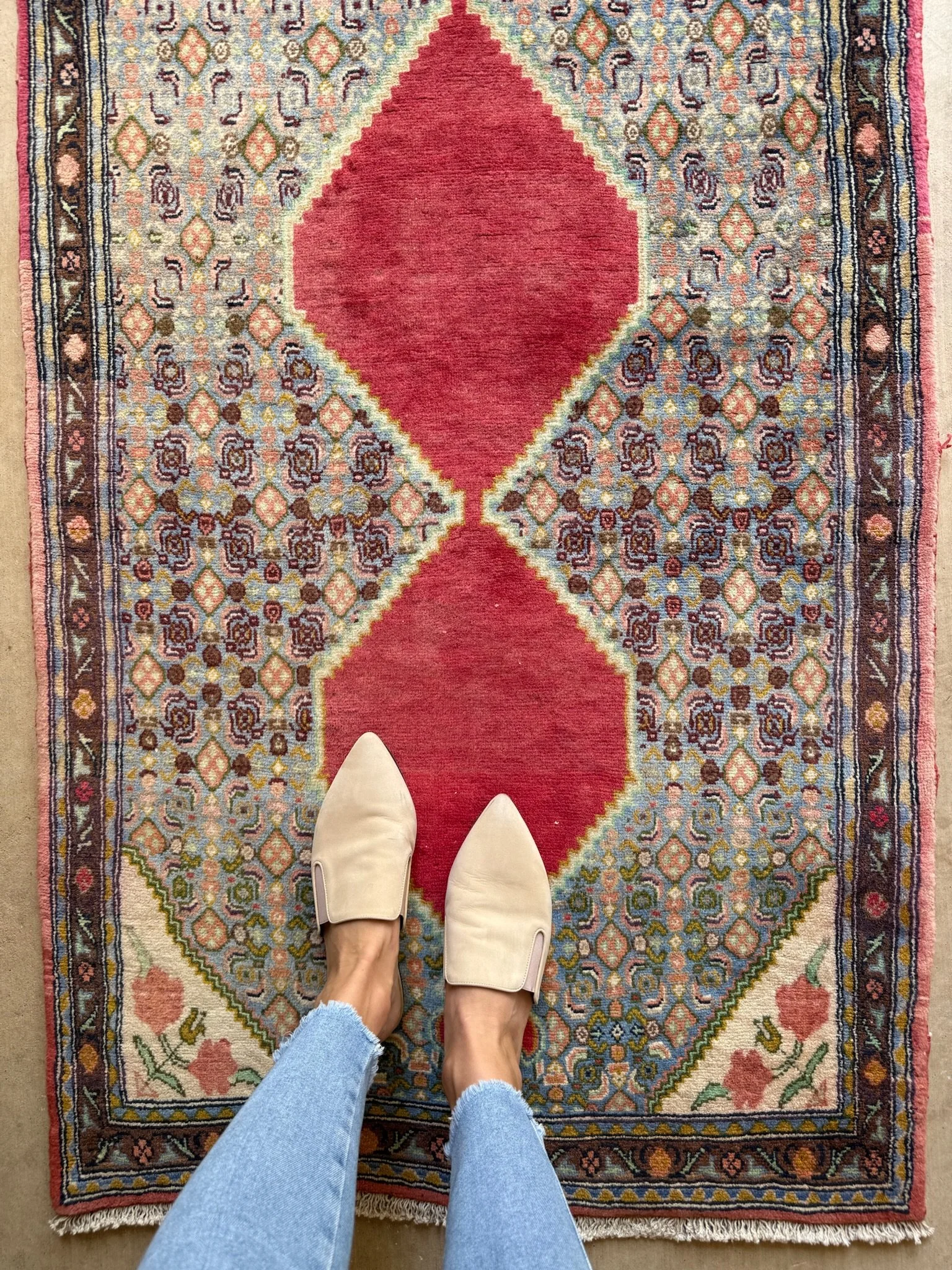 Roseline Passage moves like poetry in wool with its fiery rose field glowing with warmth, flowing through a series of rhythmic medallions that feel both graceful and grounded. Each motif carries a whisper of time, gently fading into harmony with the next, like steps along an ancient trail.